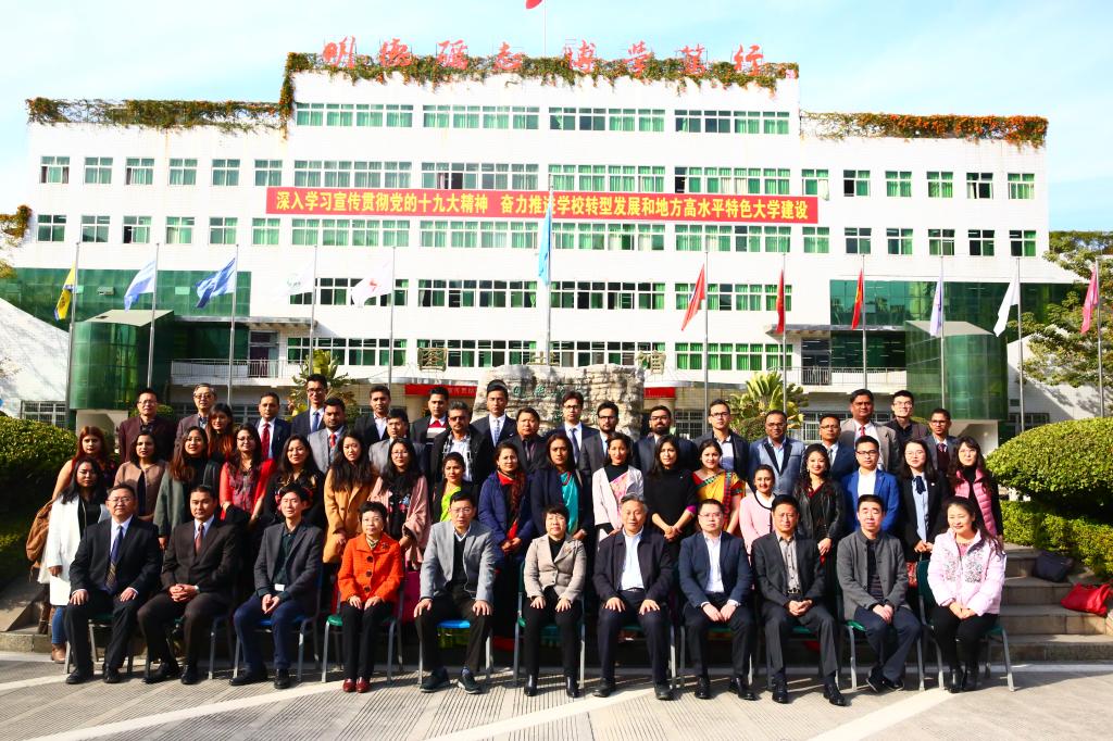 12月7日下午,2017年中国(四川)-尼泊尔卫生医疗人员研修班开班仪式在我校办公楼四楼附楼会议室举行。副市长马晓凤,校党委副书记、校长王曙光,市计委主任徐翠,市政府外事侨务办公室副主任刘佳,尼泊尔卫生医疗人员研修班35名学员参加开班仪式。仪式由副校长刘立新主持。