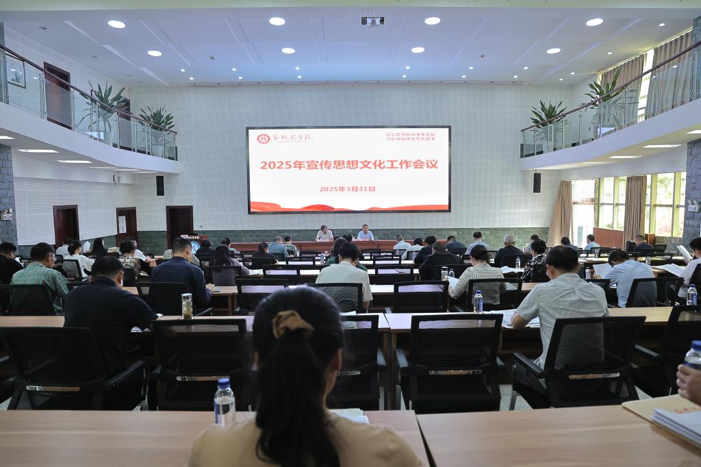 3月31日下午,我校在图书馆博雅厅召开2025年宣传思想文化工作会,全面贯彻落实党的二十大和二十届二中、三中全会精神,深入学习贯彻习近平文化思想,总结学校2024年宣传思想文化工作,安排部署2025年重点工作任务。校党委副书记刘立新出席会议并讲话。