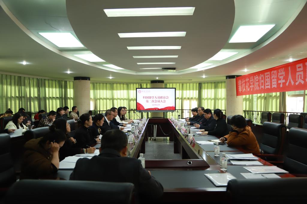1230日下午,攀枝花学院归国留学人员联谊会(以下简称留联会)第二次会员大会在弘毅楼400会议室召开。党委常委、副校长朱云生出席会议并讲话,留联会会员代表、统战委员代表参会,党委常委、统战部部长张勤主持会议。