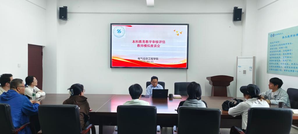 为全面把握学校教育教学活动的总体设计、质量标准和行为规范,进一步强化“五自”的质量文化意识,以昂扬向上的精神风貌迎接新一轮本科教育教学审核评估工作,电气学院于3月11日在分析测试中心7楼会议室召开审核评估教师模拟座谈会。会议由向国齐院长主持,学院青年骨干教师参加了座谈会。
