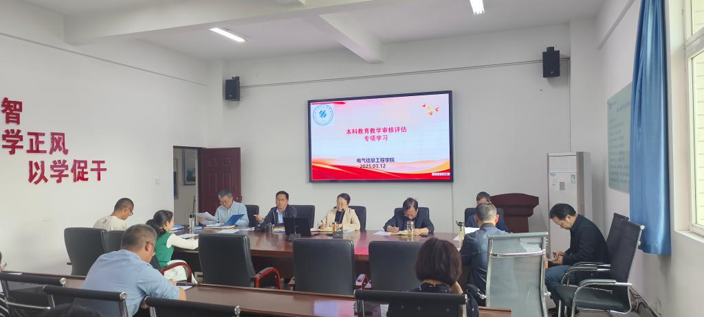 为深入贯彻落实学校本科教育教学审核评估各项工作要求,电气学院持续深入扎实开展审核评估知识专项学习活动。3月12日上午,学院召开党委理论学习中心组扩大会议,开展审核评估知识集中学习,学院领导班子全员参会,各科室(教研室)负责人、党支部书记、分团委书记列席会议。