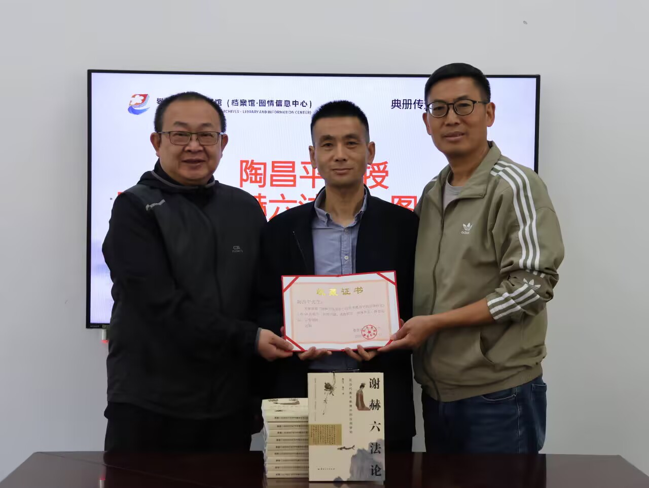 3月31日,我校艺术学院陶昌平教授向图书馆捐赠本人专著《谢赫六法论在当代美术教育中的应用研究》。图书馆在一楼会议室举行了捐赠仪式,艺术学院院长孙载斌、图书馆党支部书记、副馆长何中勇出席仪式,艺术学院和图书馆相关科室负责人参加仪式。馆长王欢主持仪式。