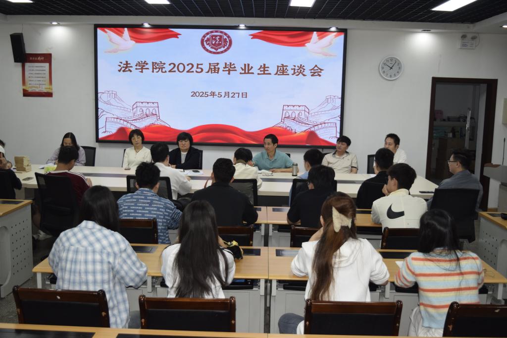 5月27日上午,法学院2025届毕业生座谈会在凌云楼三楼会议室召开。法学院党委书记张琳、法学院院长杨开华、各科室负责人、教研室主任以及部分教师代表与毕业生齐聚一堂,共话成长与未来。