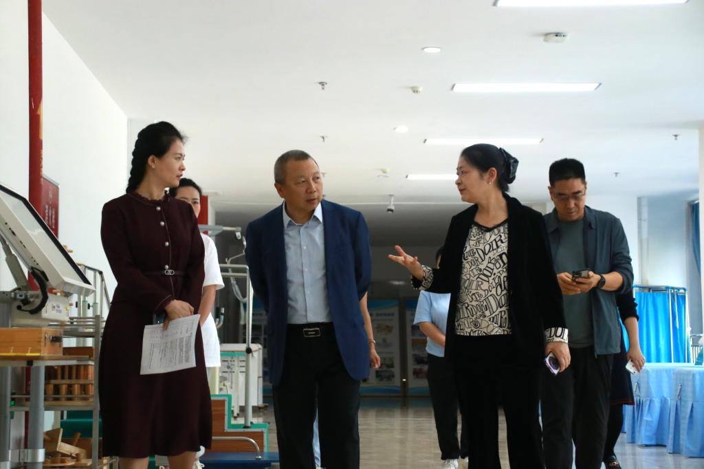 在学院领导的陪同下,金荣疆教授还前往学院康复实训室进行现场指导。金教授对学院康复实训室的硬件设施给予了充分肯定,也精准地指出实训室在设备布局规划、实训课程与设备融合等方面存在的问题,对学院康复实训室的发展建设提出了极具建设性的宝贵意见和建议。