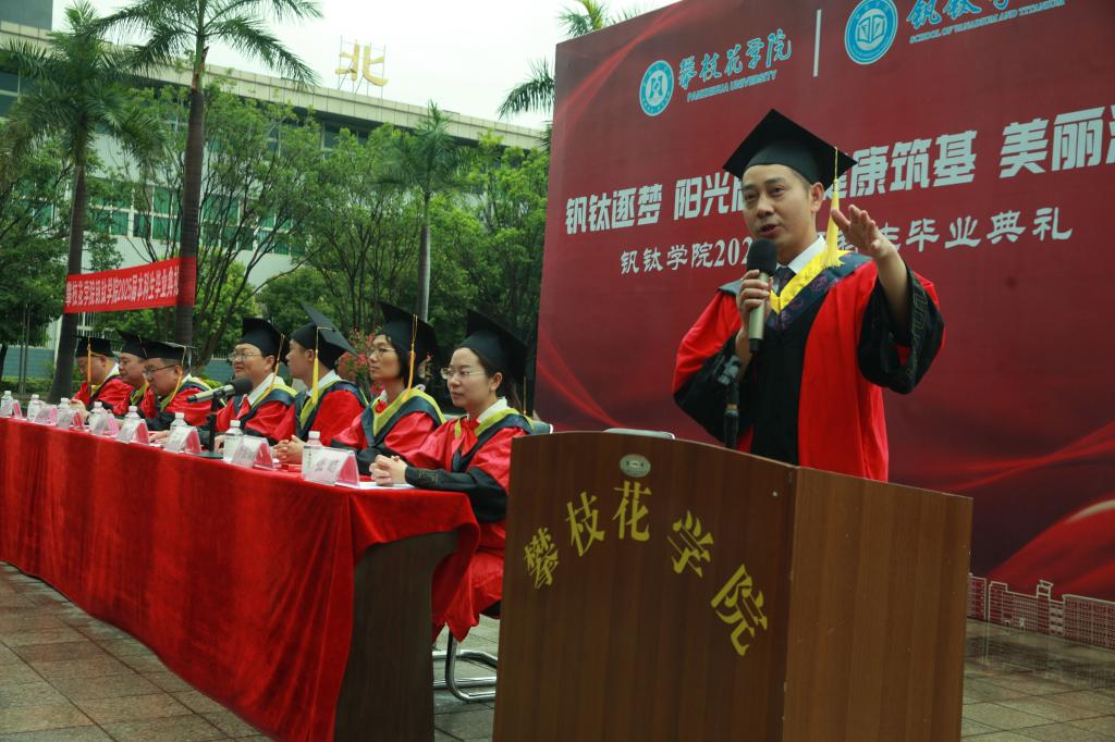 首先院长蒋志强致辞,希望毕业生牢记钒钛精神,在今后各自岗位上勇敢追逐梦想。材料科学与工程等6个专业教师代表,依次为即将踏上新征程的毕业生们献上祝福,寄语要争做知感恩、有理想、肯奋斗的新时代好青年。