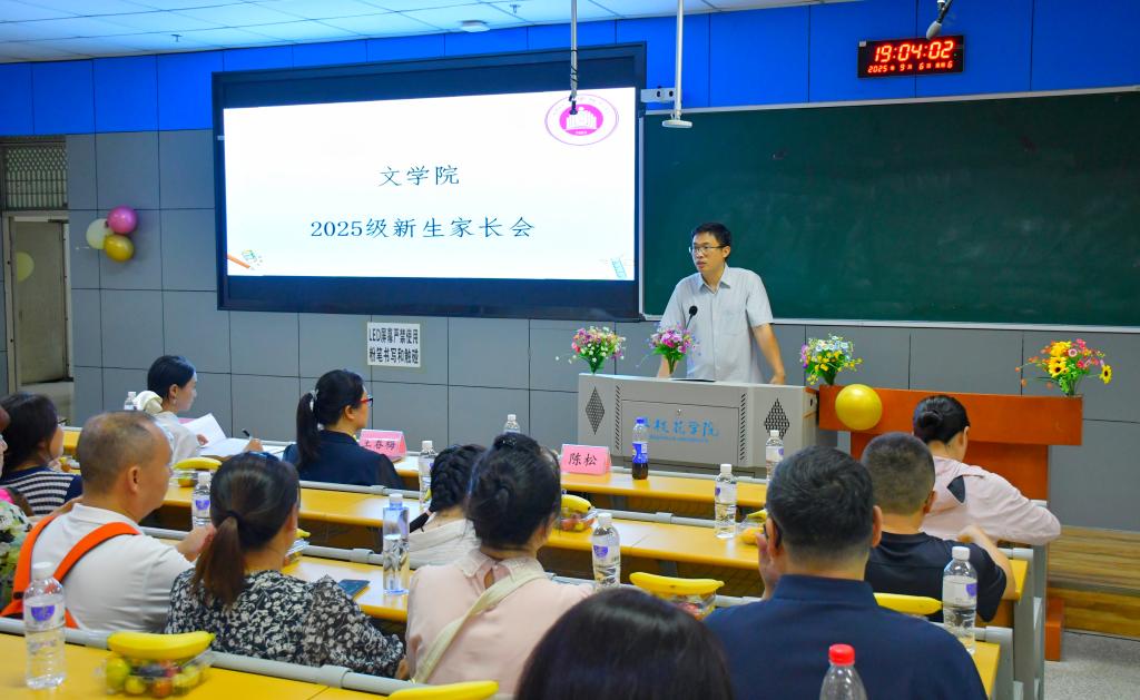 会上,陈松向家长们介绍了学院历史沿革、师资力量、专业建设等方面的基本情况,强调学院在人才培养上注重学生文学素养与实践能力的双重提升,为学生搭建了丰富的学术交流与实践平台。
