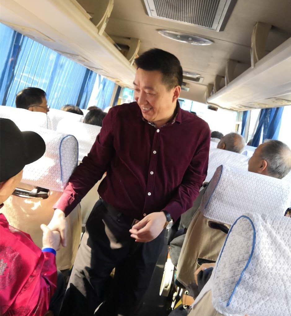 临行前,学校党委副书记胥刚专程到车上代表学校慰问出游的老同志,老同志们纷纷对学校的关心和领导的关怀表示感谢。